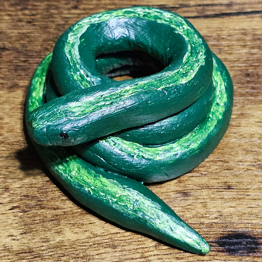 This clay snake sphere stand was hand crafted and painted in house, by the Bat Witch herself.